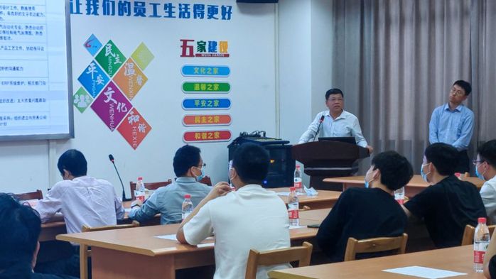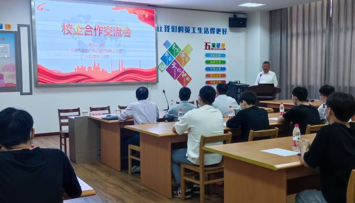公司董事长余克热情介绍了广宇花辊机械有限公司的企业发展历史及主要业务范围,并详细介绍了公司主营产品及人才需求。其中,余克带领团队在疫情防控最紧要关头抢时间赶进度完成国家下达生产口罩机专用机械设备的奋斗故事深深打动了在场听众,为同学们上了一堂生动的大思政课。会后,双方就行业人才培养、学生职业选择困扰、印花人才需求等方面进行了重点交流。