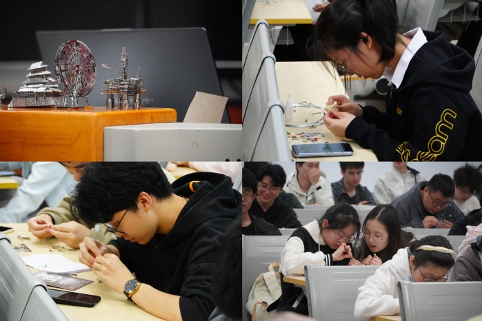 活动以螺钉、螺丝、铁丝等基础机械材料为创作载体,采用三人小组协作的形式开展模型制作。活动现场,同学们默契配合,或专注拼接零件、或精心组合结构、或创意搭建造型,亲手将普通的机械材料转化为兼具创意与质感的作品。实操过程中,大家近距离接触机械构造原理,在反复调试、耐心打磨中,提升动手能力,深化对机械专业知识的理解。